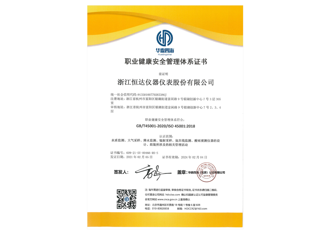 職業健康安全管理體系證書